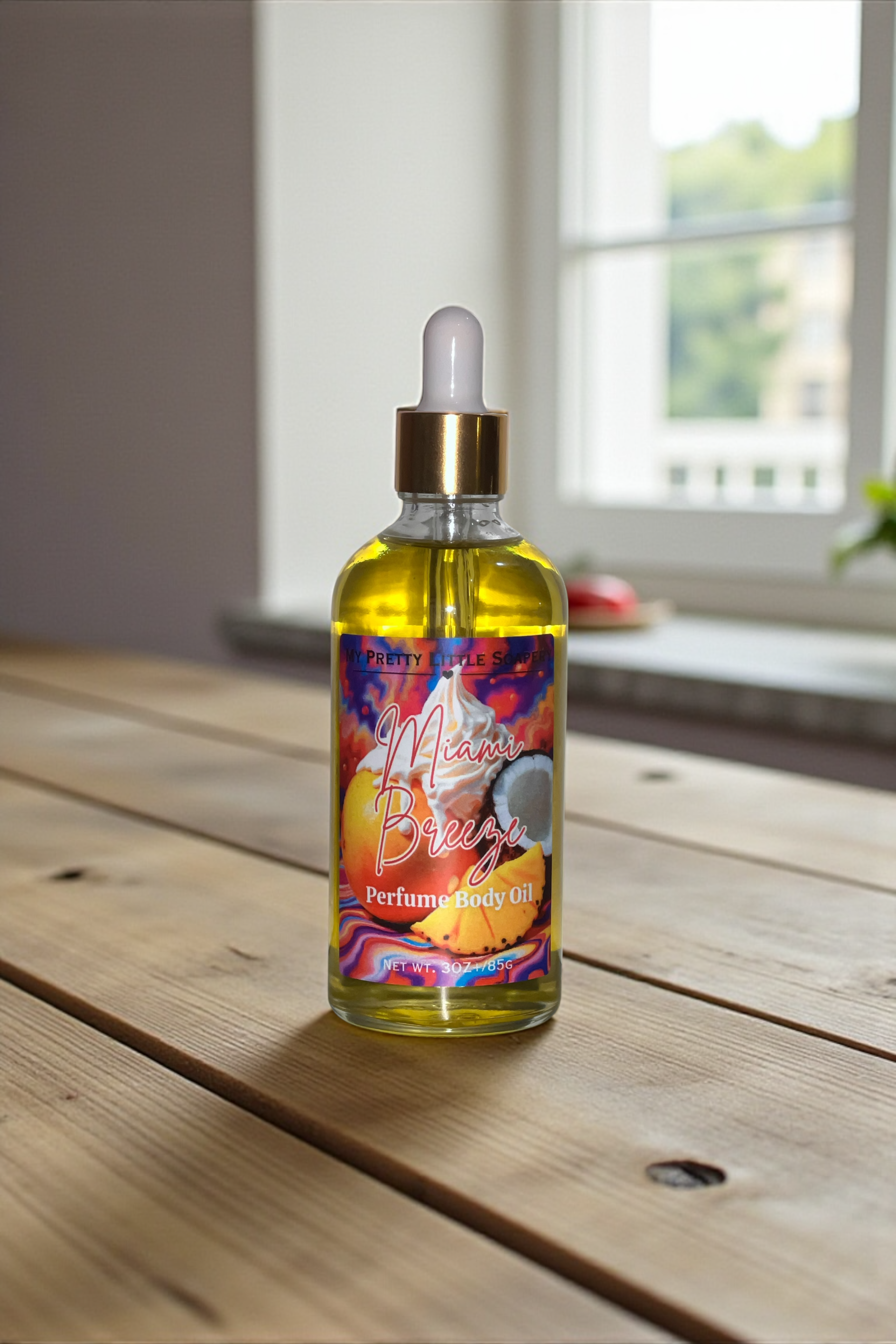 Indulge in the opulent experience of Miami Breeze Body Oil, where the harmonious fusion of ripe mango and creamy coconut envelops the senses, reminiscent of sun-kissed shores. The heart reveals a luscious tonka and pineapple blend, while the warmth of musk and vanilla lingers, creating an exquisite aura that transcends the ordinary.