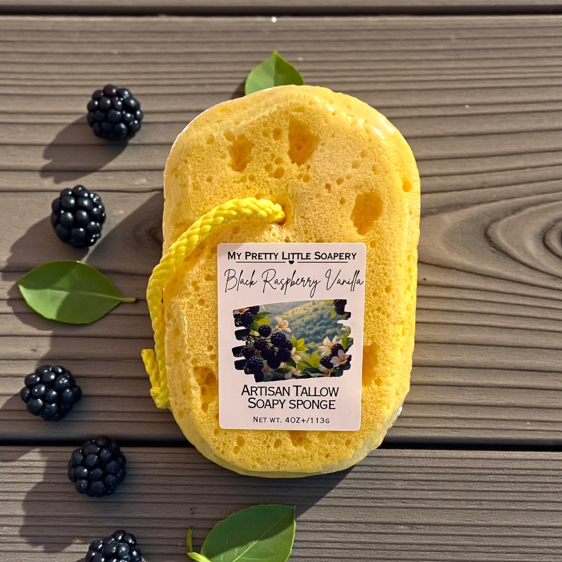 Experience the refreshing and nourishing benefits of our Black Raspberry Vanilla Soapy Sponge. Made with natural tallow soap infused with the sweet scent of black raspberries and vanilla, this sponge is not only a cleansing essential but a delightful sensory experience. Elevate your shower routine now! With an average lifespan of 15 washes, simply allow the rainbow sponge to dry after use for prolonged use. (No guarantees if you can resist squeezing out all the magical soap!)