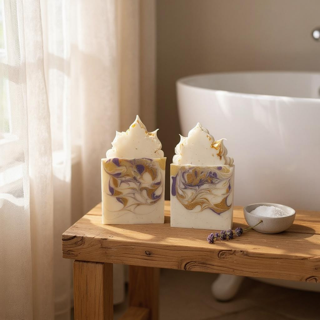 Ingredients: Saponified oils of Tallow, Olive oil, Sunflower oil, Coconut oil, Castor oil, mica, and fragrance.